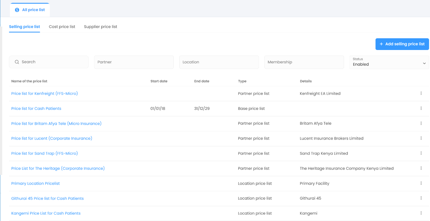 Supports flexible pricing plans using context based pricelists that enhances profitability and offers great flexibility to offer services to various categories of customers, payors and location based pricing.